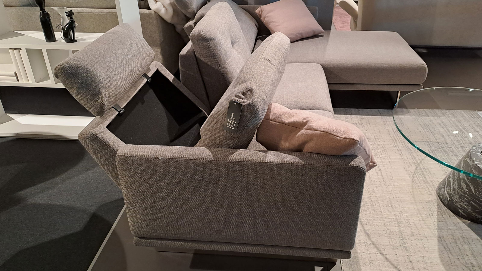incl. 2 Kopfstützen (hinter Kissen abklappbar)