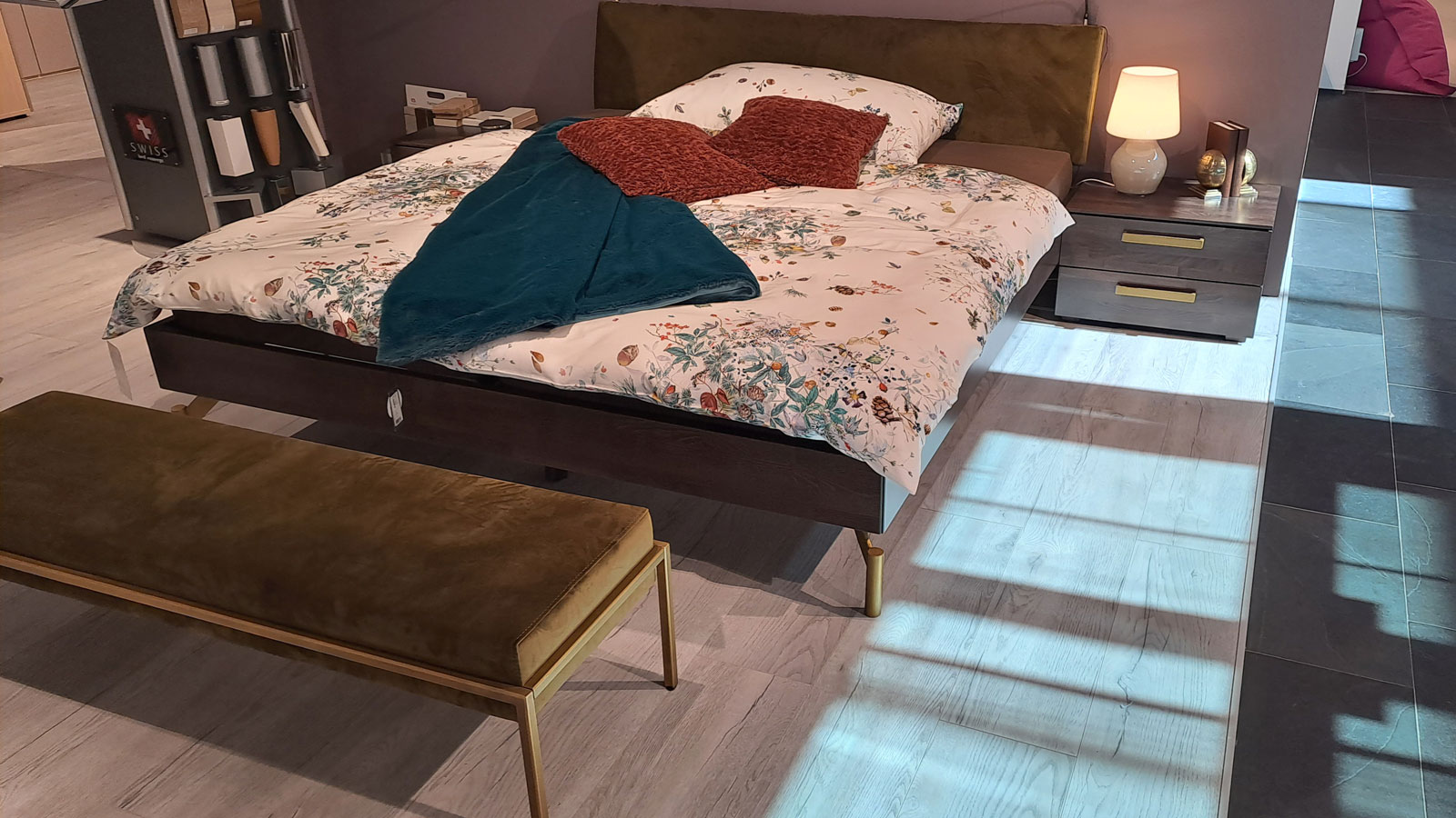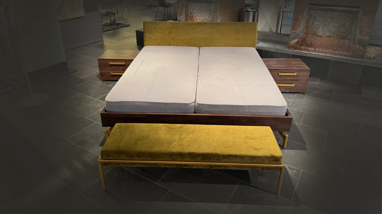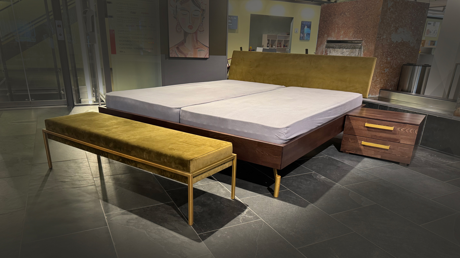 Bettanlage mit Kopfteil in Stoff