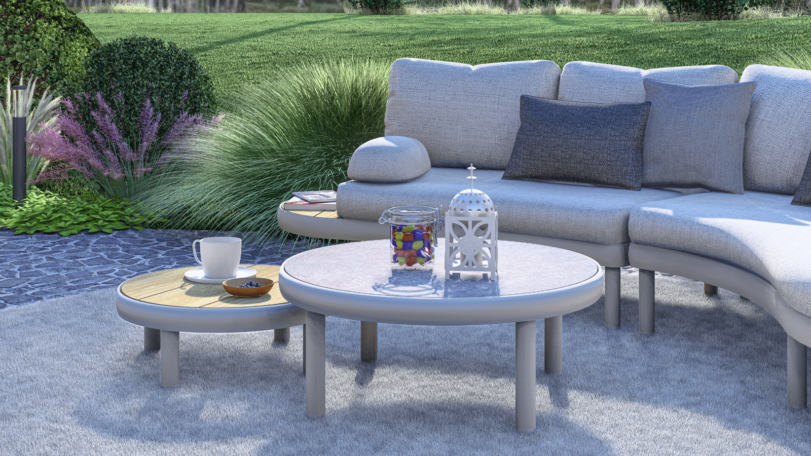 inkl. 2 Beistelltische, 1 Armlehnkissen und 2 Kuschelkissen