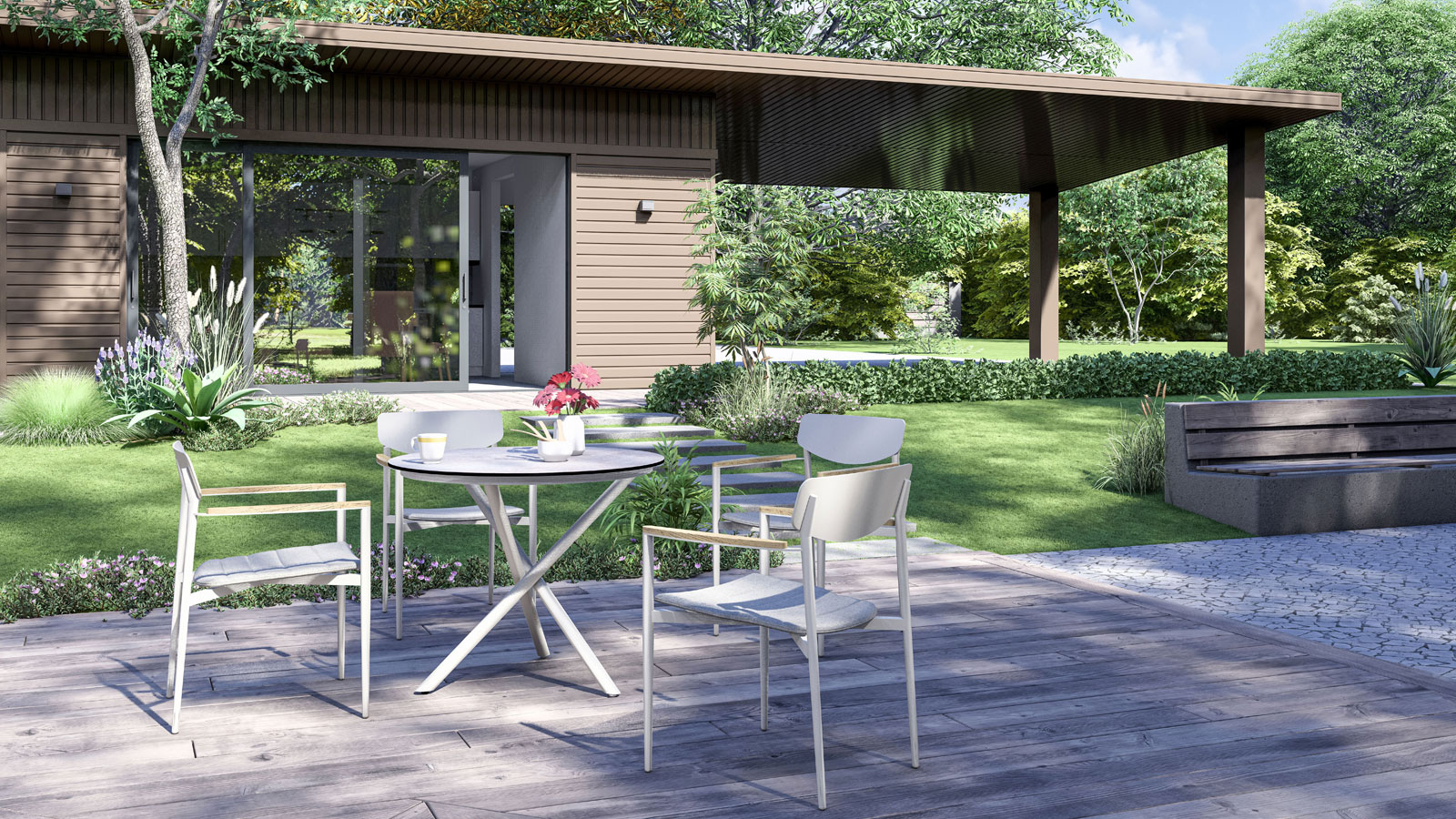 - Armlehnen: recyceltes Teakholz