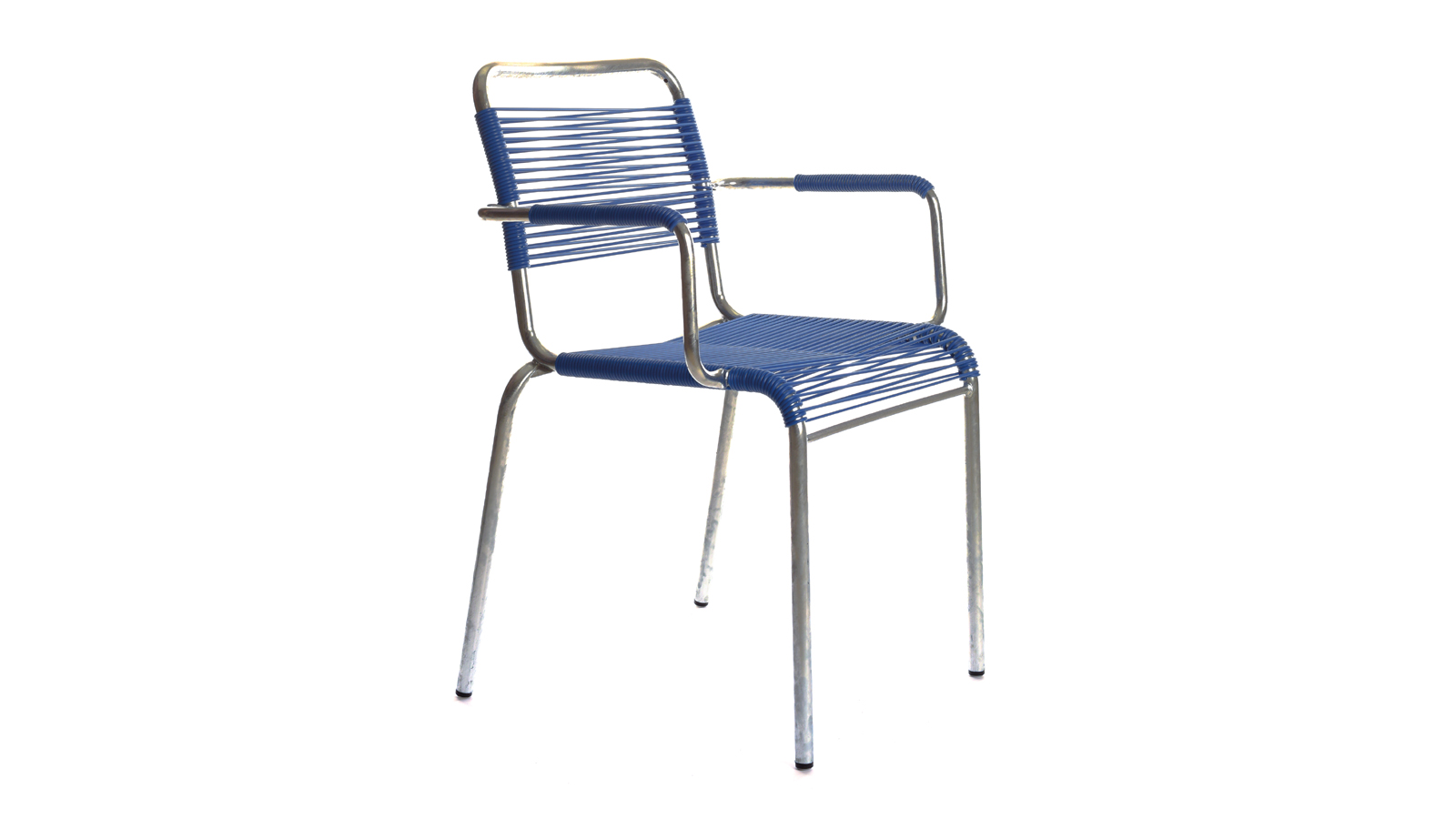 - Sitz, Rücken und Armlehnen: PVC-Rundschnur signalblau RAL 5005