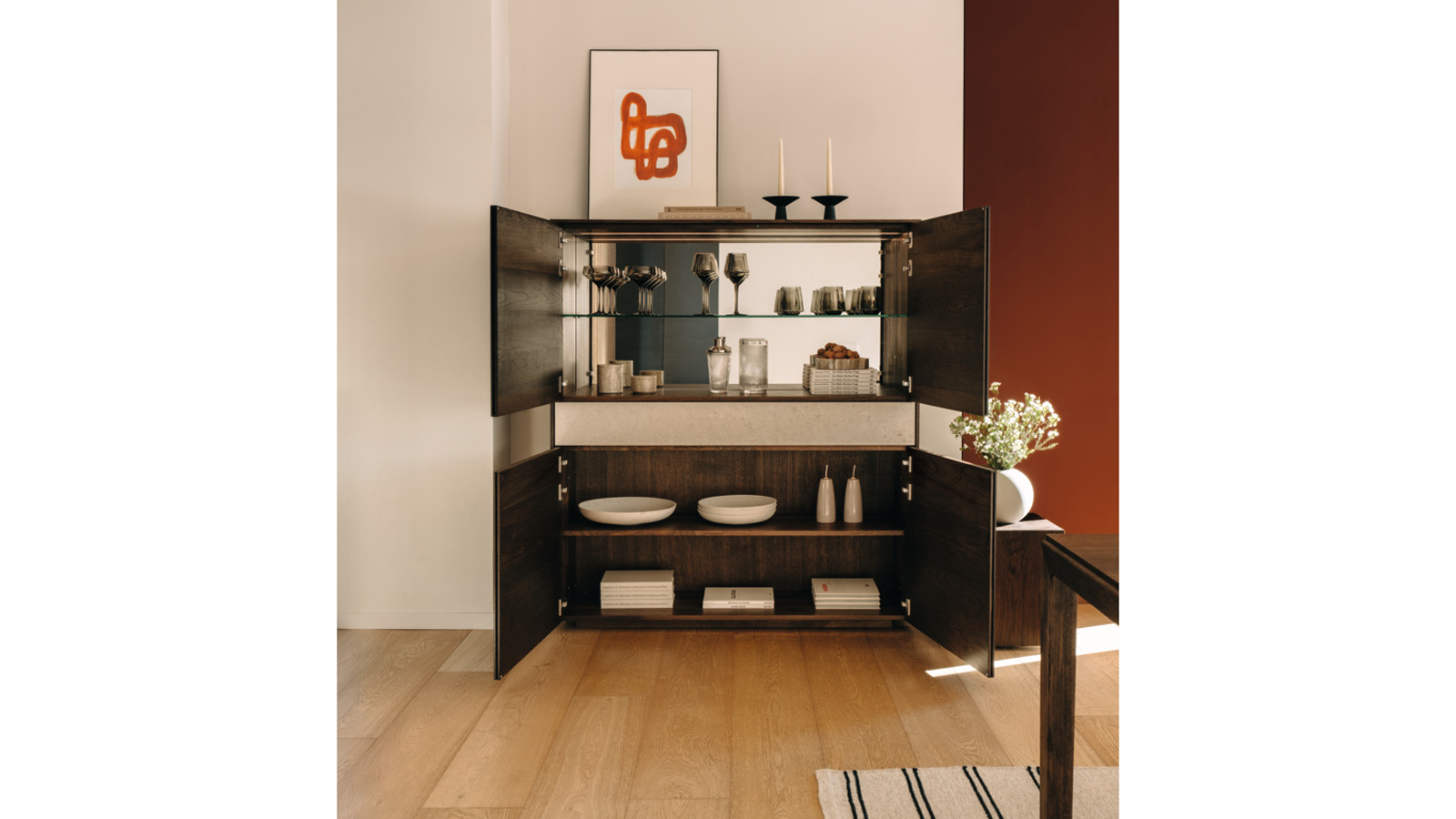 4 Drehtüren, 1 Schublade