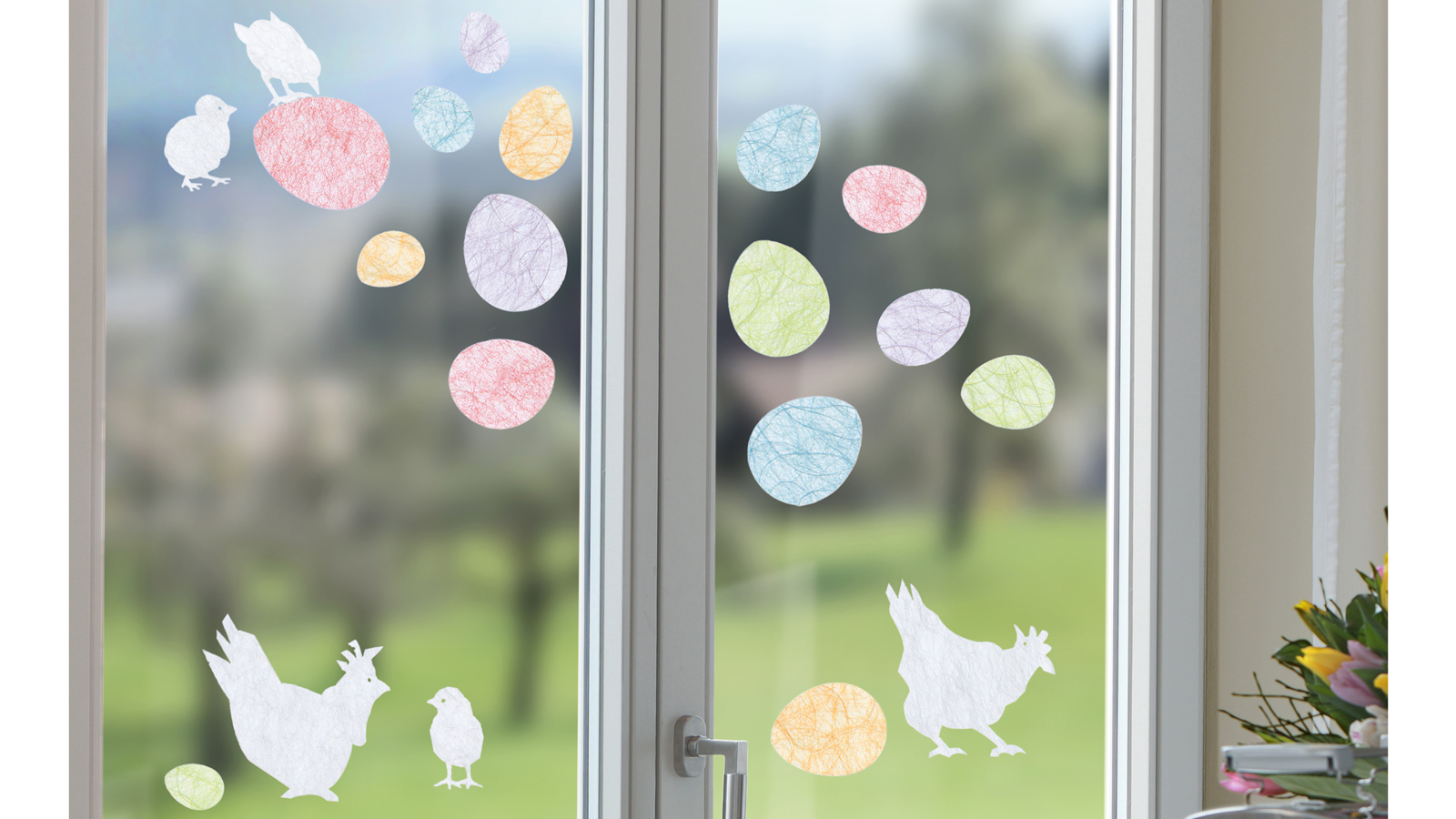 Deko-Hafttextil, für Glasflächen im Innenraum,