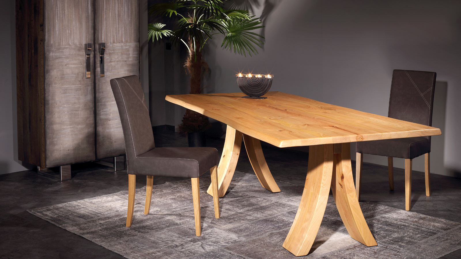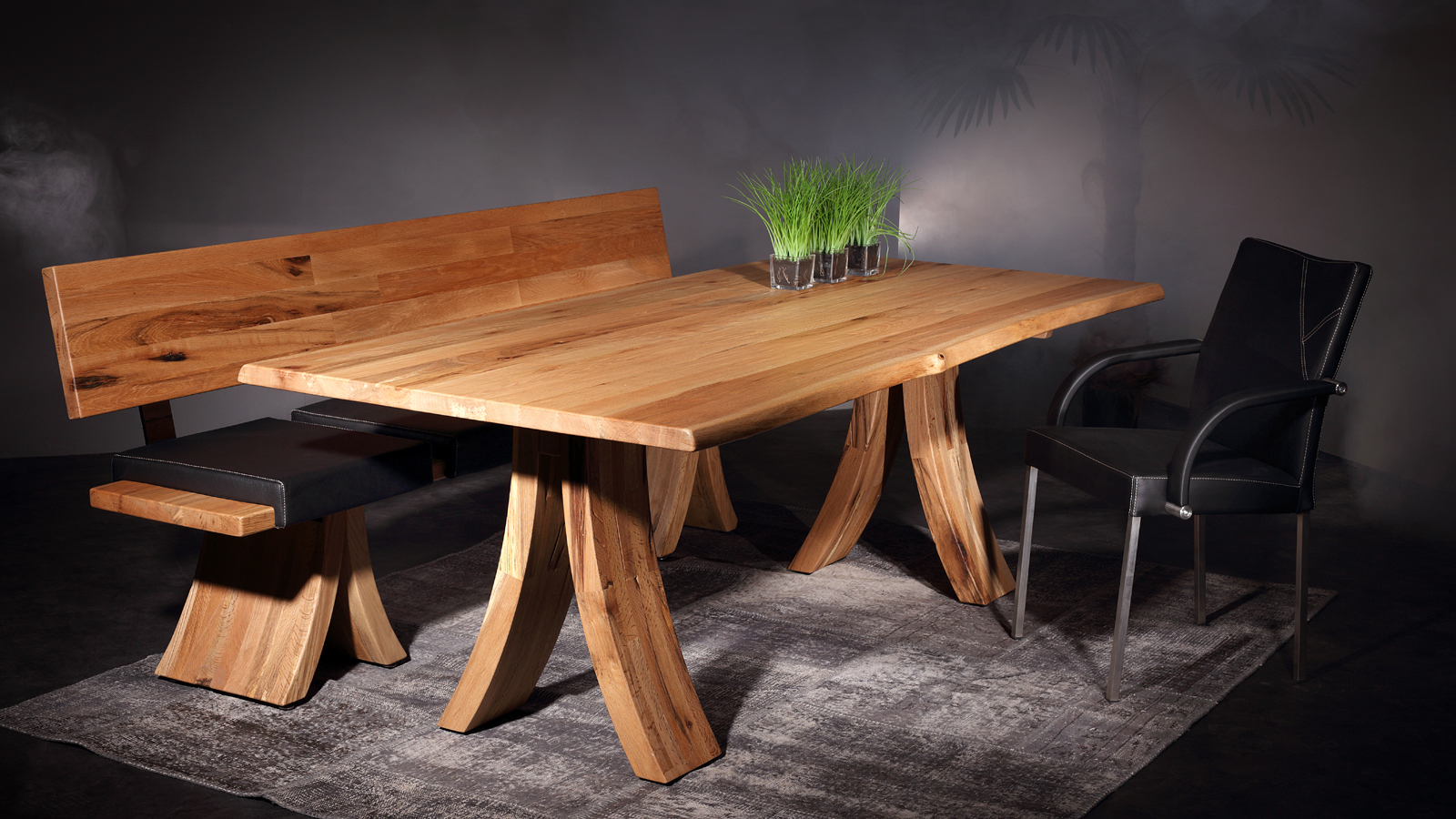- Platte: 4 cm Sumpfeiche massiv, geschroppt