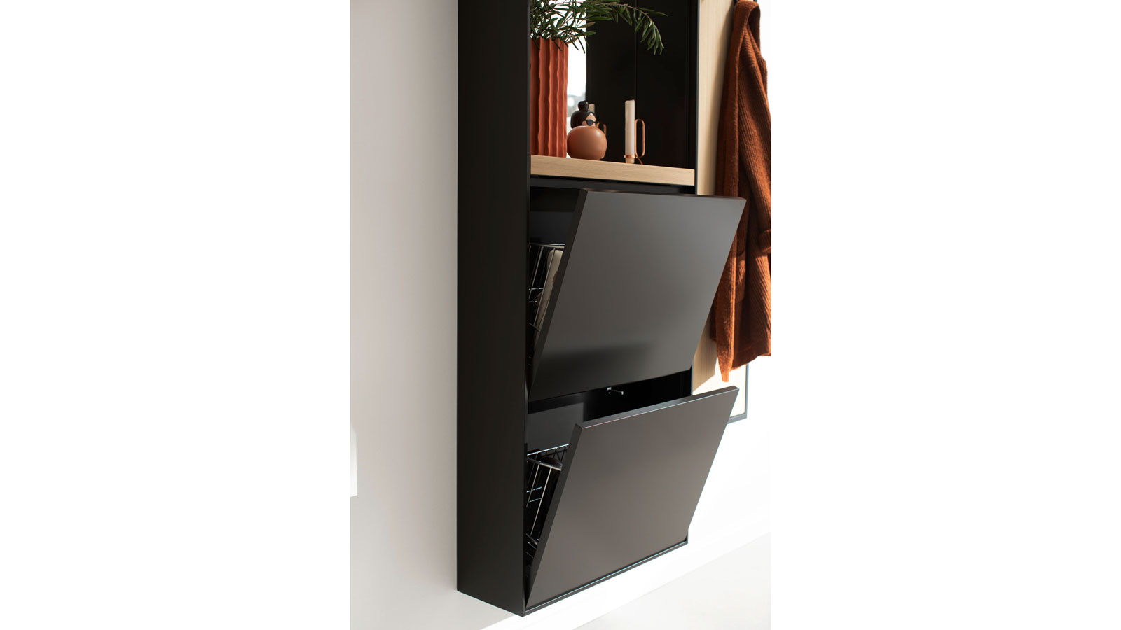 2 Klappen mit je einem Schuhkorb,